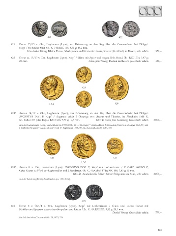 423* Aureus 14/12 v. Chr., Lugdunum (Lyon), zur Erinnerung an den Sieg über die Caesarmörder bei Philippi.