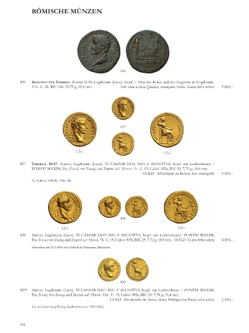 428 Aureus, Lugdunum (Lyon). TI CAESAR DIVI AVG F AVGVSTVS, Kopf mit Lorbeerkranz/ PONTIF MAXIM,