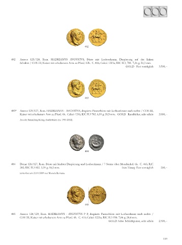482 Aureus 12 /128, Rom. HADRIANVS AVGVSTVS, Büste mit Lorbeerkranz, Drapierung auf der linken
