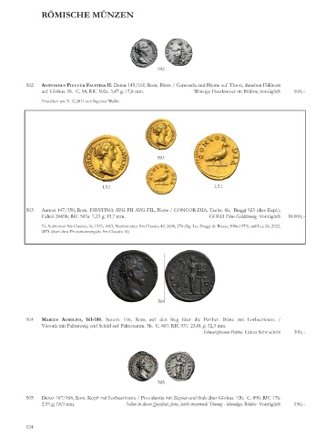 03 Aureus 147/1 0, Rom. FAVSTINA AVG PII AVG FIL, Büste / CONCOR-DIA, Taube. 6h. Biaggi 923 (dies Expl.);