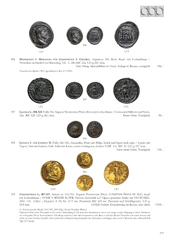 Zepter, Victoria-Statuette, links Adler mit Kranz, rechts Gefangener, darüber X-IIG. 11h RIC 30. 2,67 g; 19,7 mm.