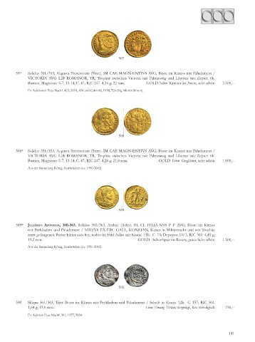 Bastien, Magnence -7, 13-14; C. 47; RIC 247. 4,34 g; 22 mm. GOLD Selten Kratzer im Avers, sehr schön 3. 00,--