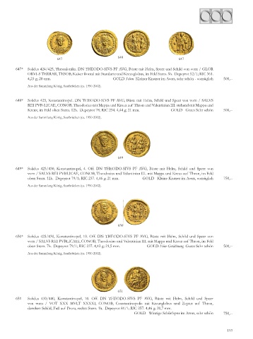 649* Solidus 42 /430, Konstantinopel, 4. Off. DN THEODO-SIVS PF AVG, Büste mit Helm, Schild und Speer von