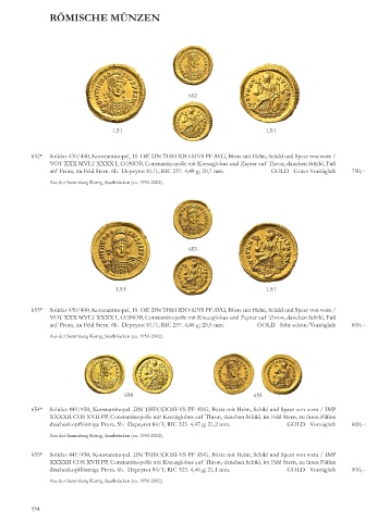 6 2* Solidus 430/440, Konstantinopel, 10. Off. DN THEODO-SIVS PF AVG, Büste mit Helm, Schild und Speer von vorn /