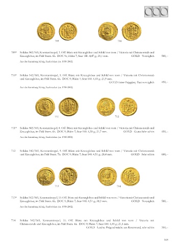 713* Solidus 42/ 6 , Konstantinopel, 10. Off. Büste mit Kreuzglobus und Schild von vorn / Victoria mit Chrismonstab und