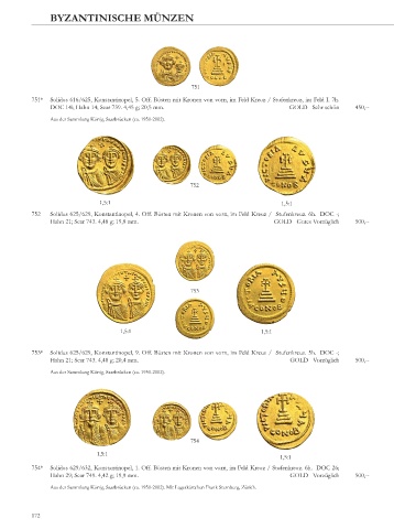 7 3* Solidus 62 /629, Konstantinopel, 9. Off. Büsten mit Kronen von vorn, im Feld Kreuz / Stufenkreuz. h. DOC -;