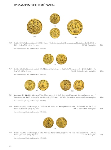 763* Solidus 642/646, Konstantinopel, 6. Off. Büste mit Krone und Kreuzglobus von vorn / Stufenkreuz. 6h. DOC 1f;