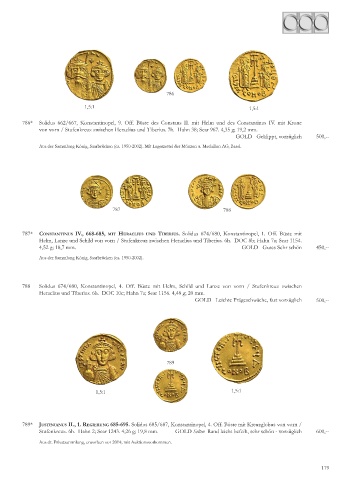 786* Solidus 662/667, Konstantinopel, 9. Off. Büste des Constans II. mit Helm und des Constantinus IV. mit Krone