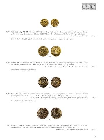 938* Solidus 788/792, Benevent, mit Titel Karls des Großen. Büste mit Kreuzkrone und Kreuzglobus von vorn / Kreuz