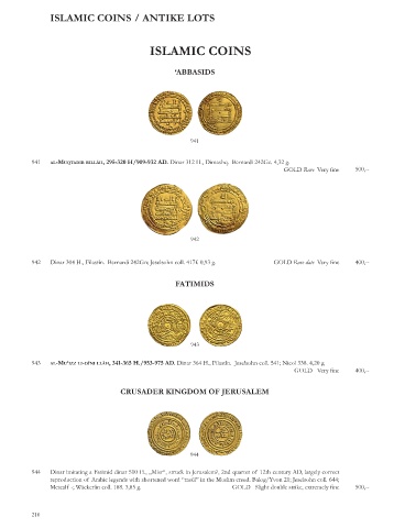 942 Dinar 304 H., Filastîn. Bernardi 242Gn; Jeselsohn coll. 417f. 0,93 g. GOLD Rare date Very fine 400,--