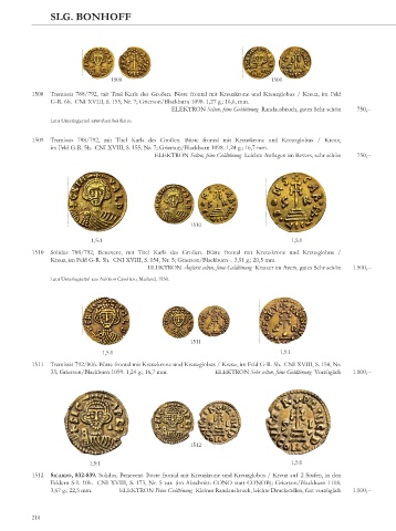 1509 Tremissis 788/792, mit Titel Karls des Großen. Büste frontal mit Kreuzkrone und Kreuzglobus / Kreuz,