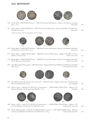 1559 Denier, Palastmünzstätte. +GRATIA D-I REX Karolus-Monogramm / +PALATINA MONET Kreuz. Depeyrot