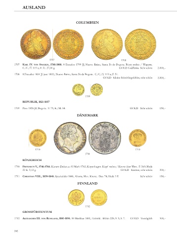 1709 Peso 1826 JF, Bogota. F. 73; K./M. 84. GOLD Sehr schön 150,--