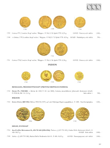 1742 GeorG iv., 1760-1820. 1/4 Mohur ab 1204/19 AH (ab 1808), Calcutta, immobilisierte Jahreszahl. Beiderseits Schrift.