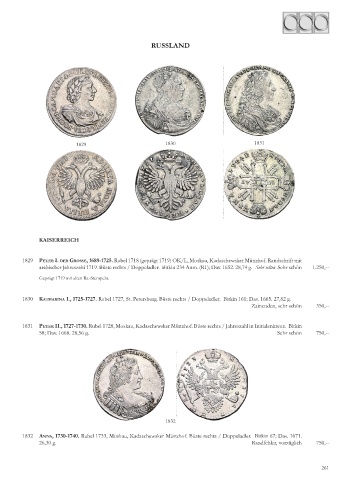 arabischer Jahreszahl 1719. Büste rechts / Doppeladler. Bitkin 234 Anm. (R1); Dav. 1652. 28,74 g. Sehr selten Sehr schön 1.250,--