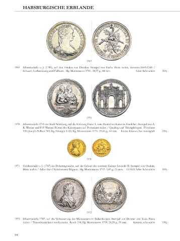 1970 Silbermedaille 1745 der Stadt Nürnberg, auf die Krönung Franz‘ I. zum Deutschen Kaiser in Frankfurt. Stempel von A.