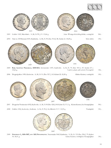 2083 Gulden 1822, Mannheim. A./K./S. 55; J. 31. 12,66 g. Selten Winzige Schrötlingsfehler, vorzüglich 300,--