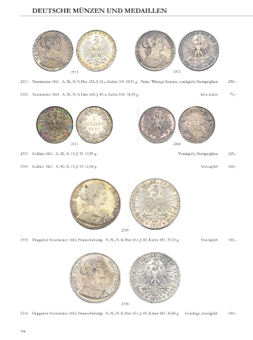 2311 Vereinstaler 1861. A./K./S. 9; Dav. 652; J. 42 a; Kahnt 169. 18,51 g. Patina Winzige Kratzer, vorzüglich/Stempelglanz 250,--