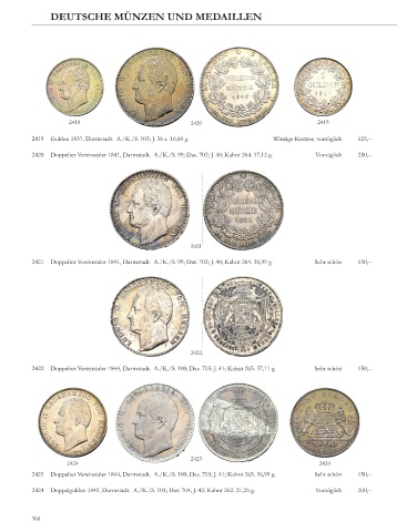 2424 Doppelgulden 1845, Darmstadt. A./K./S. 101; Dav. 704; J. 42; Kahnt 262. 21,26 g. Vorzüglich 200,--