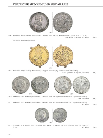 2572 1/2 Gulden zu 30 Kreuzer 1660, Heidelberg. Büste rechts / 3 Wappen. Slg. Memmesheimer 2324; Slg. Noss 313.