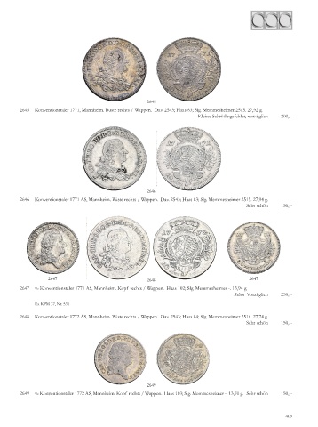 2649 1/2 Konventionstaler 1772 AS, Mannheim. Kopf rechts / Wappen. Haas 103; Slg. Memmesheimer -. 13,70 g. Sehr schön 150,--