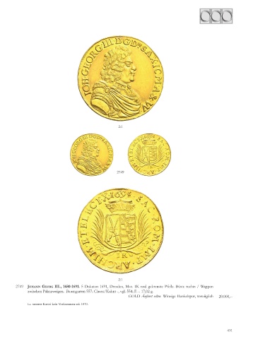 2749 JohAnn GeorG iii., 1680-1691. 5 Dukaten 1691, Dresden, Mzz. IK und gekreuzte Pfeile. Büste rechts / Wappen