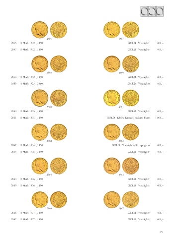 2865 10 Mark 1906. J. 190. GOLD Vorzüglich 400,--