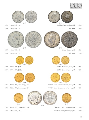 2951 20 Mark 1901, Grosherzog. J. 225. GOLD Kleine Kratzer, sehr schön/Vorzüglich 750,--