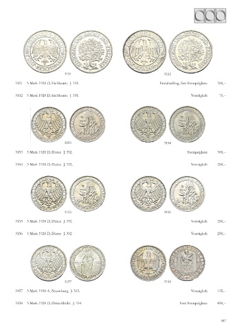 3157 3 Mark 1928 A, Naumburg. J. 333. Vorzüglich 125,--