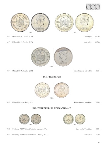 3182 5 Mark 1932 A, Goethe. J. 351. Vorzüglich 1.500,--