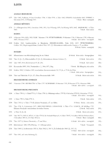 3293 Taler 1817 A, 1830 A, 1870 C, 2/3 Taler 1792 S, für Ansbach-Bayreuth, 1/3 Taler 1789 E, ½ Gulden 1852 für Hohenzollern,